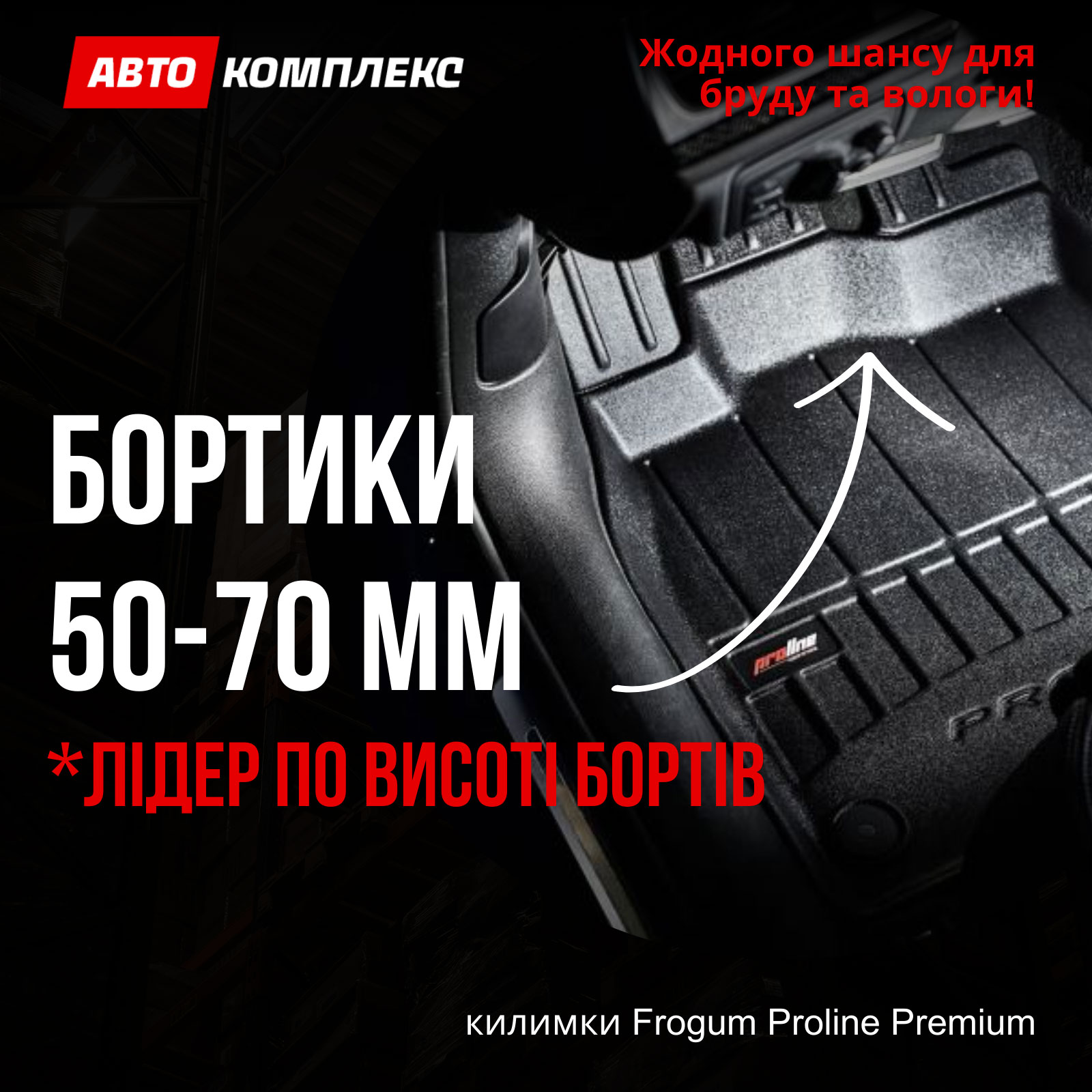 🛡️ Унікальна перевага 3D ковриків з бортиками 50-70мм Frogum Proline Premium для салону Audi A3 (8P) (2003-2012)