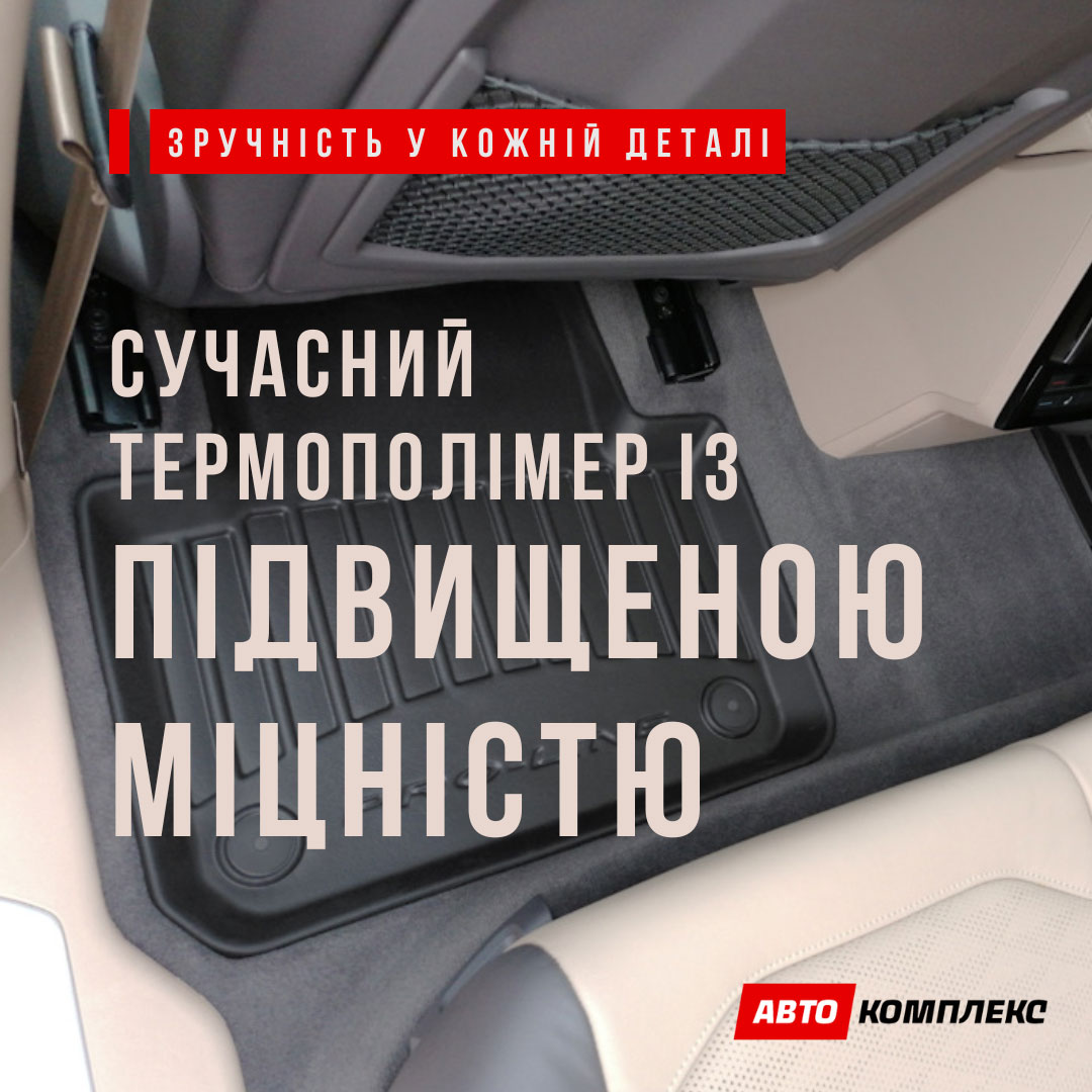 "Матеріал преміум-рівня — не тріскається на морозі, без запаху, бортики чудово утримують вологу та бруд. Легко мити, килимки не ковзають, дуже довговічні."